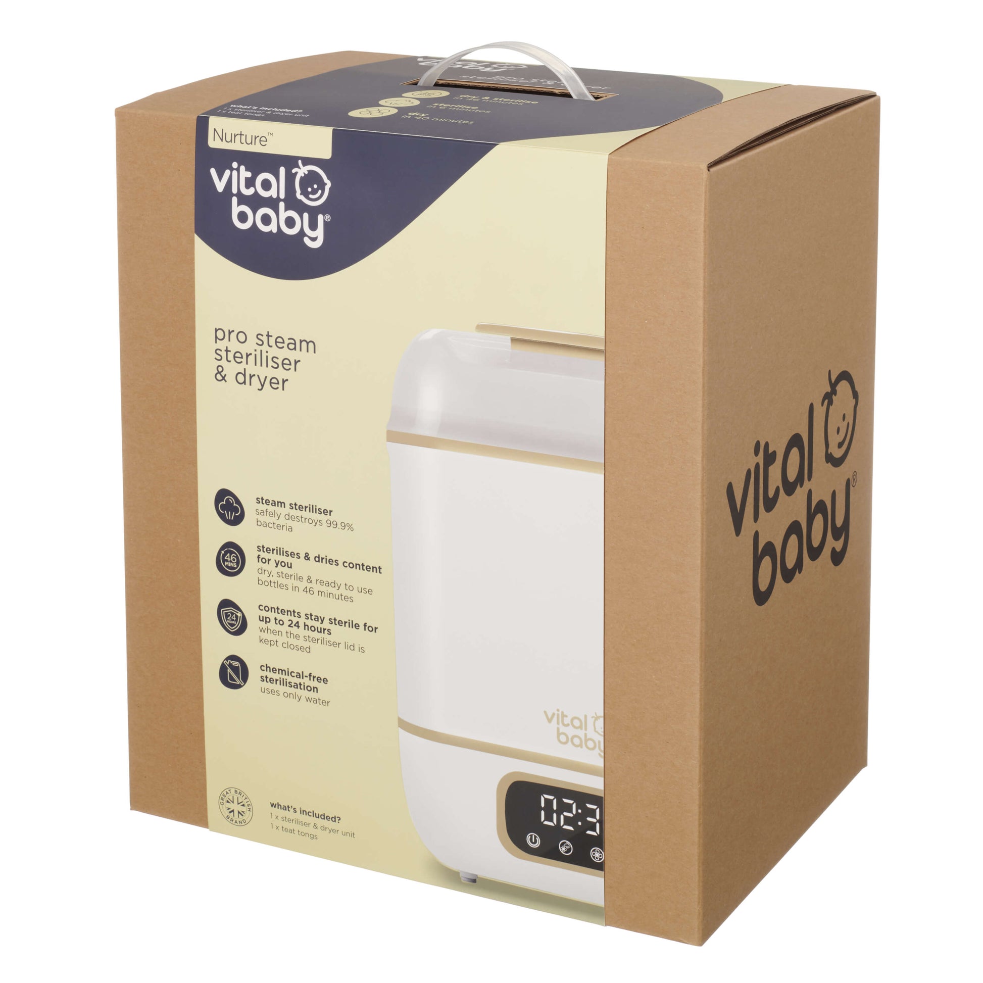Its compact, modern design fits seamlessly into any kitchen while ensuring maximum convenience. Whether you’re sterilising bottles, soothers, or breast pump parts, the pro steam steriliser & dryer makes it effortless to maintain a hygienic feeding routine.