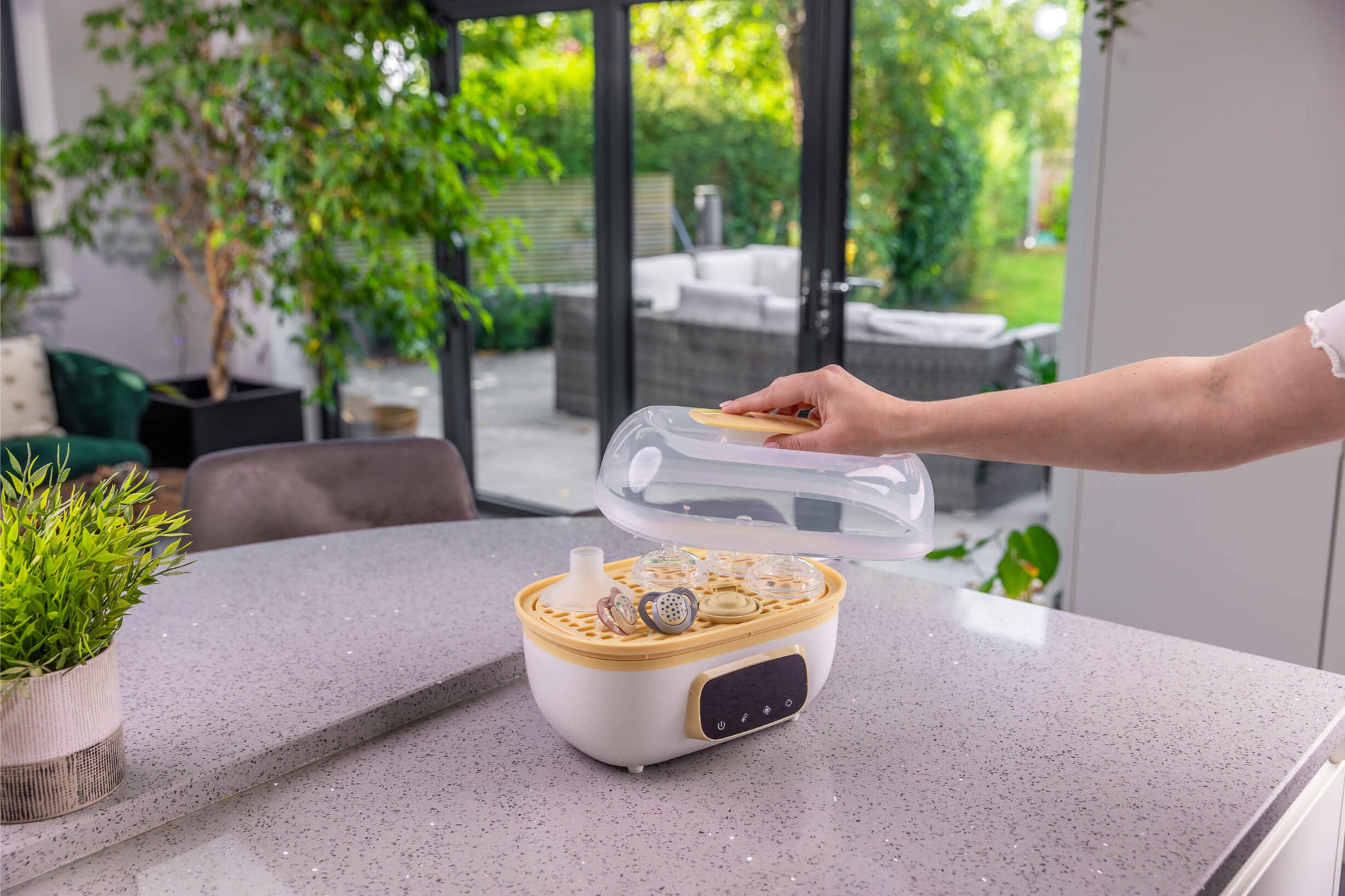 The large capacity allows you to sterilise 6 wide-neck bottles plus breast pump accessories, teats, and other essentials in a single cycle. The intuitive LCD display makes it incredibly easy to use, giving you full control over the sterilisation and drying process.